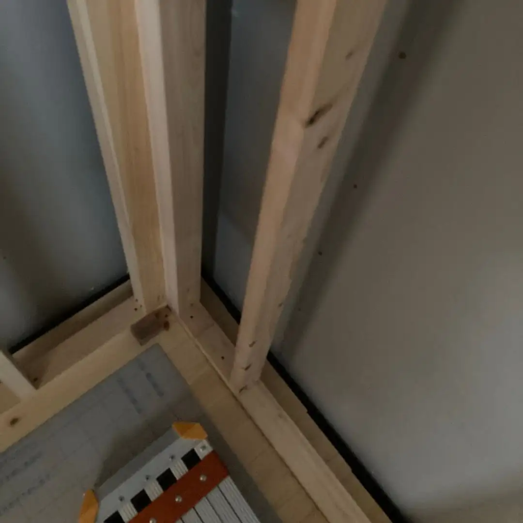 壁下地。こちらも家本体から離すことでおうちのほうに諸々(!?)伝わるをの防ぎます。