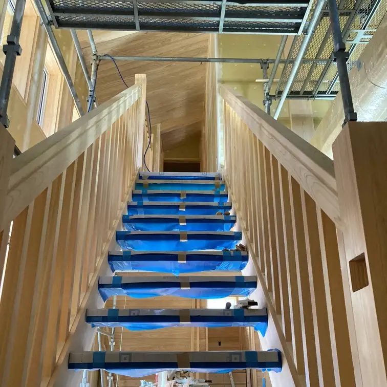 LDKに鎮座する•••かなり存在感を放つ階段も手すりがついていよいよ完成が近いことを感じさせます。