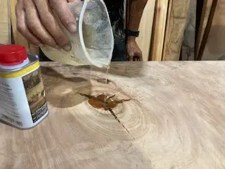 次回のおうちはトチノキのテーブルに決定です。レジンで穴埋め作業を施したこちらも一品物のテーブルです。