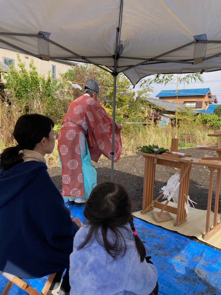 今年一番の寒さの中での地鎮祭でしたが無事滞りなく終了いたしました。小さなお子様たちもじっと寒さに耐えてくれていました。その小さな背中が可愛いくて寒さも忘れてしまいました。昨日の雨とで足元も悪かったですがよく頑張ってくれました。来年は暖かいおうちで冬を過ごしてもらえるように進めていきます。
