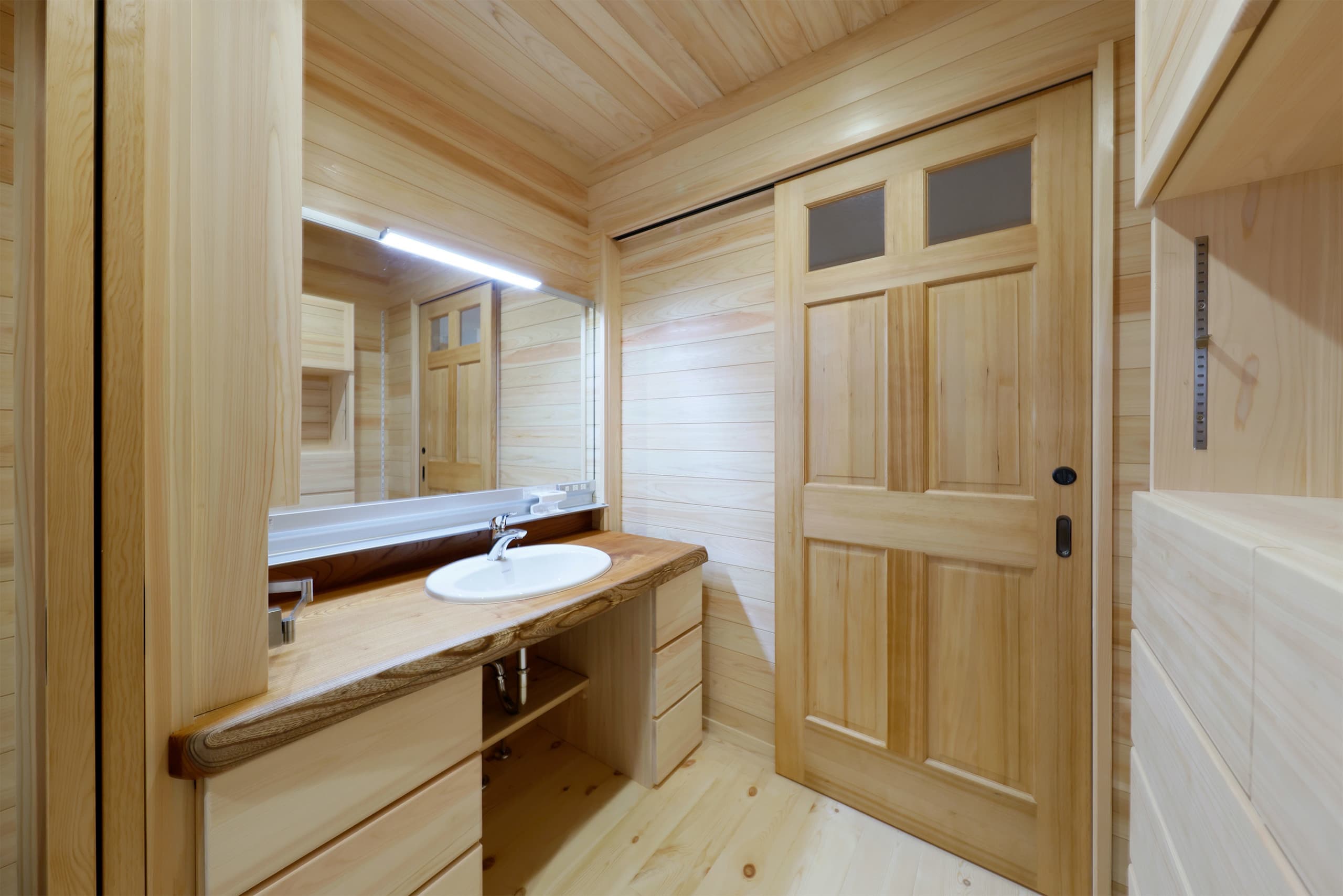 ✔️湯切りも快適 厚さ 2.5 倍ステンレスシンク+天然桧材収納。