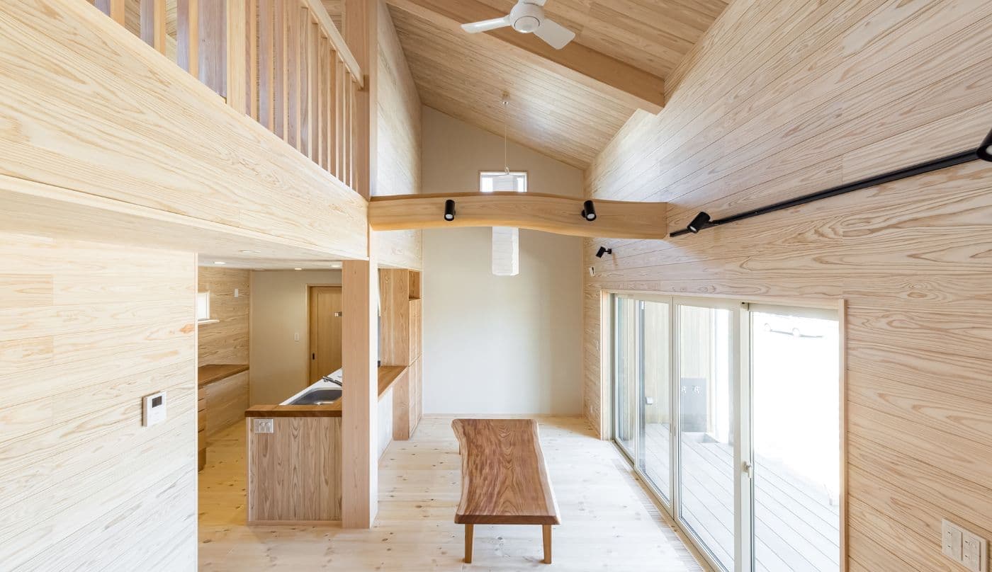 ✔️変形したタイコ梁が、和紙の照明とマッチ
