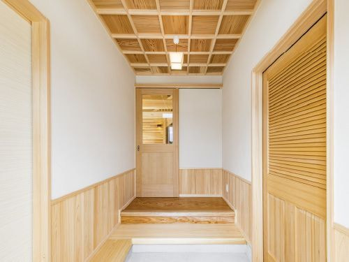✔️ シンプルな格天井の玄関+ケヤキの式台