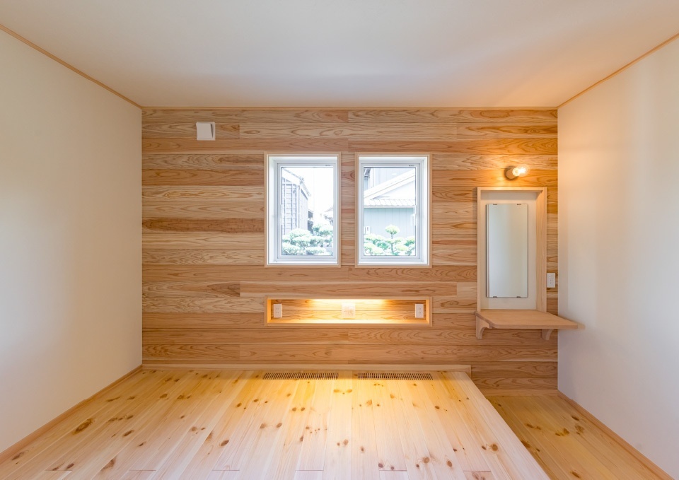 ✔️ 手造り鏡台がある1階寝室は段差付