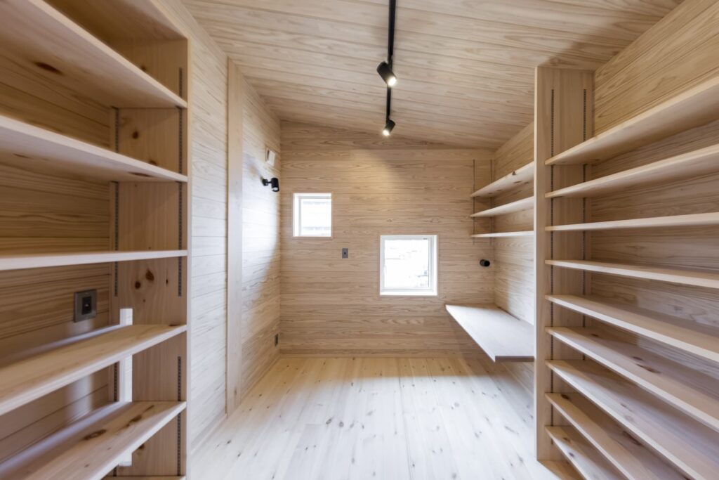 書斎は、床も天井も壁も、大好きな「木」という素材で囲まれた空間であることが、一番のお気に入りです。そして、南側の日当たりの良い「一等地」なのに、入口は隠し扉になっているというちょっと不思議な空間配置も気に入っています。(南側に書斎を置くという大胆なアイデアは設計士さんのアイデアを反映させてもらいました)