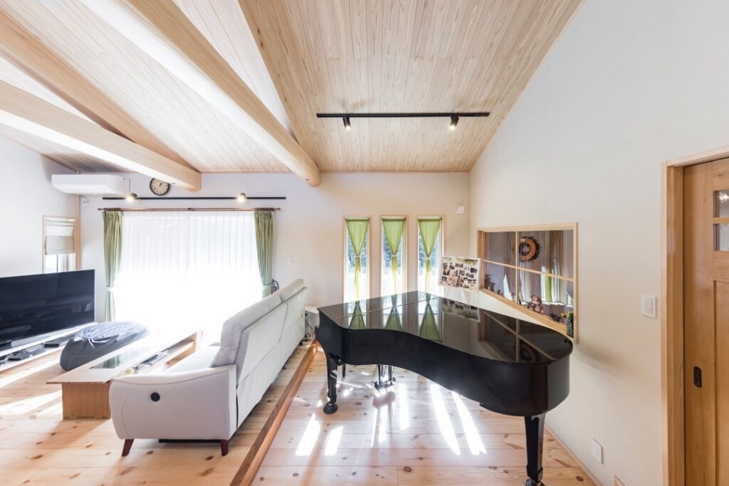 広々としたリビングに、ピアノを置いて、忙しい日々でもゆっくりとその場でくつろげる場の設定を想像し設計をお願いした。