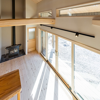 まず第一に、「木枠の4 枚窓」と、「新ストーブ」があること。この2 つは絶対と依頼しました。あと、一階部分の風通しが良いように回れること。