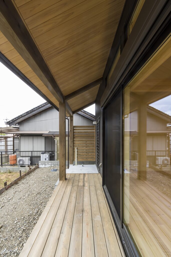 外には洗い場も設け人にも動物にも便利な場所に。屋根もあるので濡れることなく外流しで野菜を洗ったり、ワンちゃんの足洗いにも万能スペース。出幅を広くしたデッキは畑仕事の休憩にもってこい。