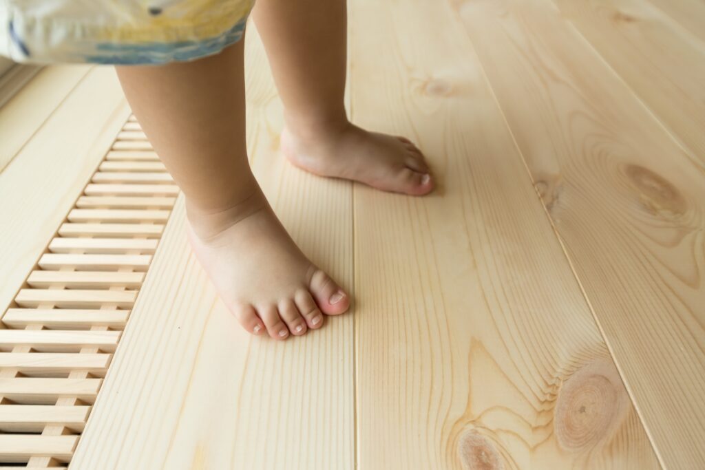 玄関同様に、ダイニング側からも階段下を利用した収納。扉の下が空いているのはお掃除ロボットがそのまま入れるように。