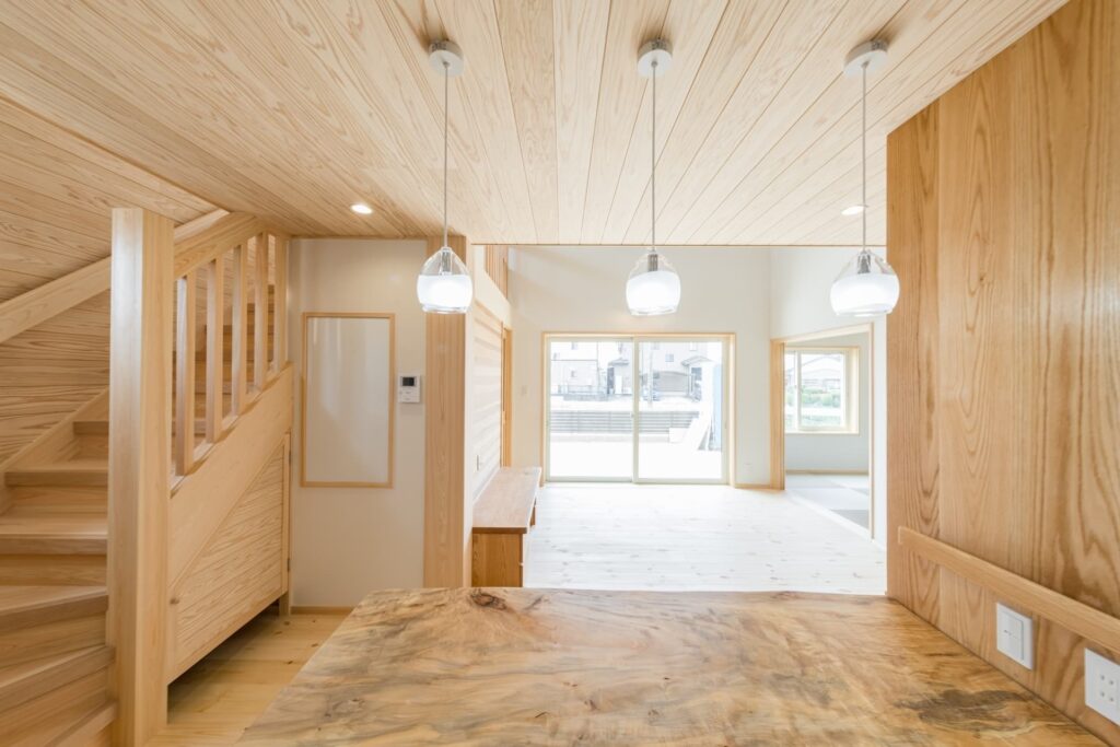ダイニングテーブルにはトチノキを使用。