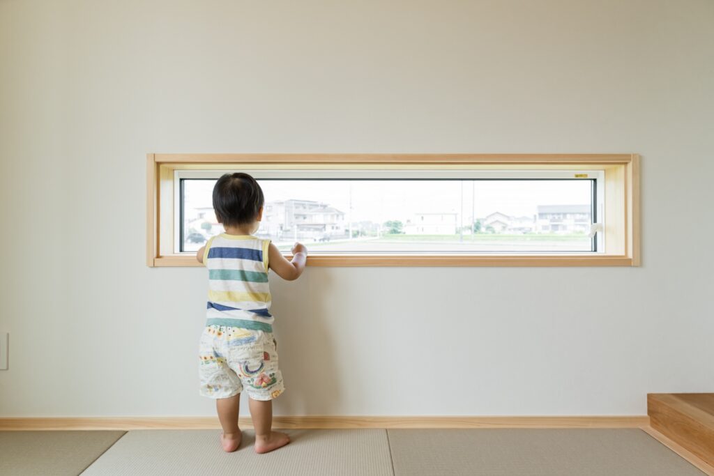スキップフロアからも和室が覗け、お子様のお昼寝の様子が書斎から見守れる。