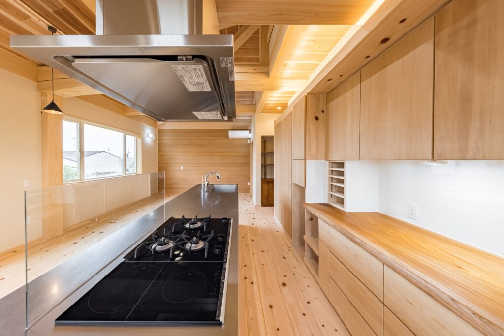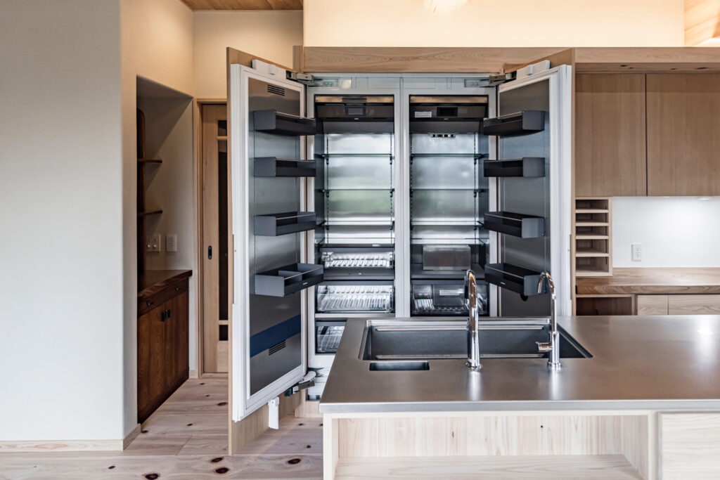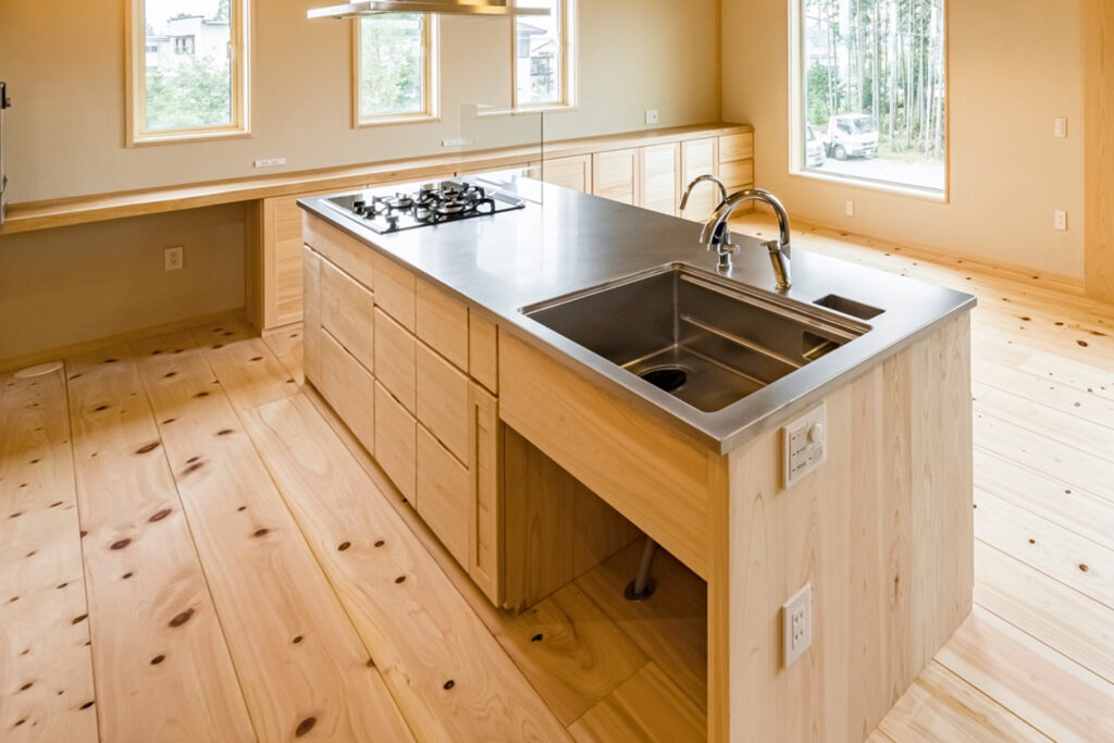 せこ住研製ステンレスワークトップには「3ステップシンク」「浄水器水栓」「タッチレス水栓」「ドミノ式コンロ(ガスとIHのハイブリッドコンビネーション)」を組み合わせました。
