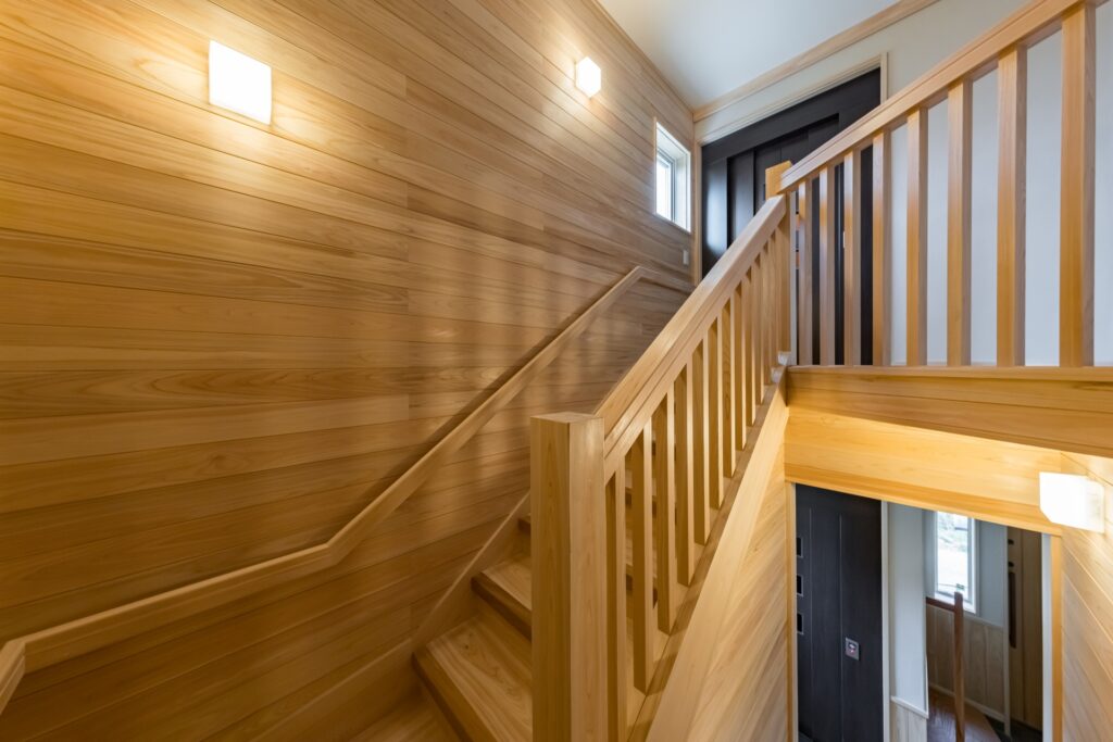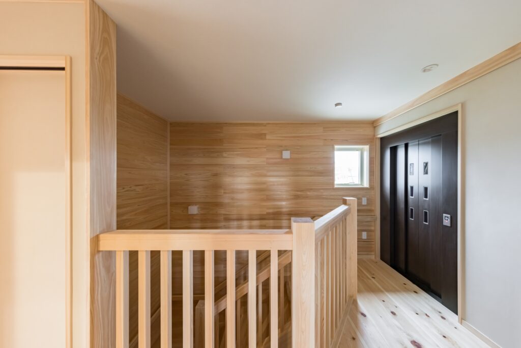 2階を暮らしの中心に設計。将来も快適に暮らす為にエレベーターも設置しました。階段はのぼりやすく広々と。