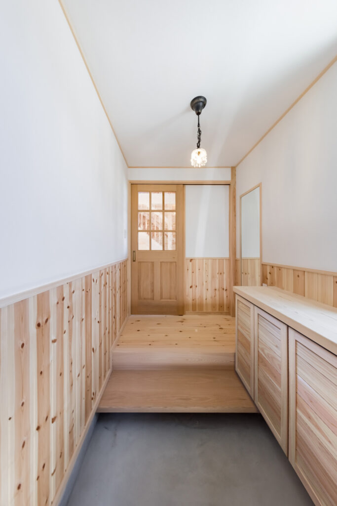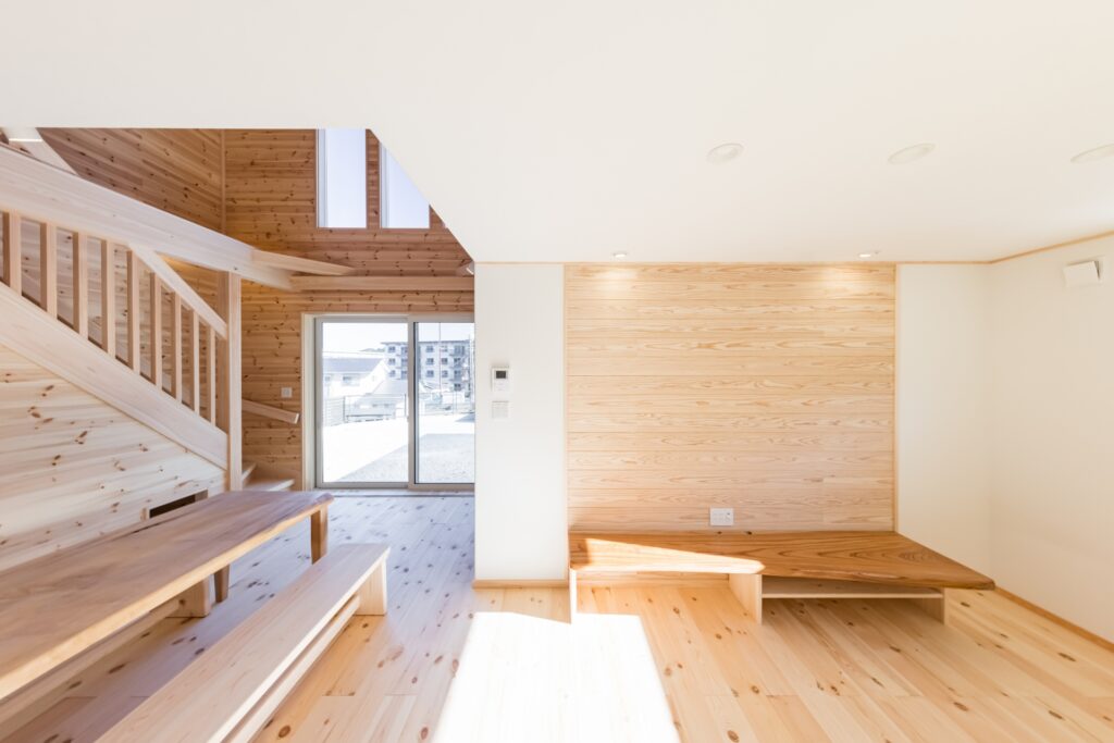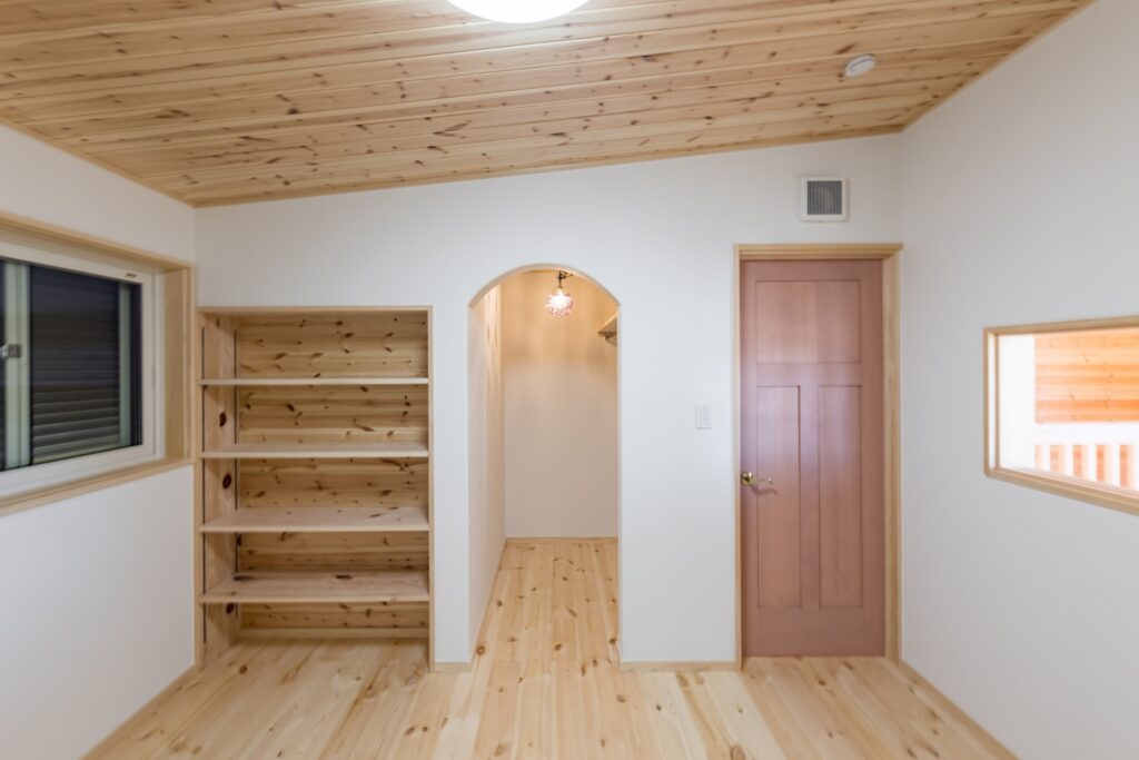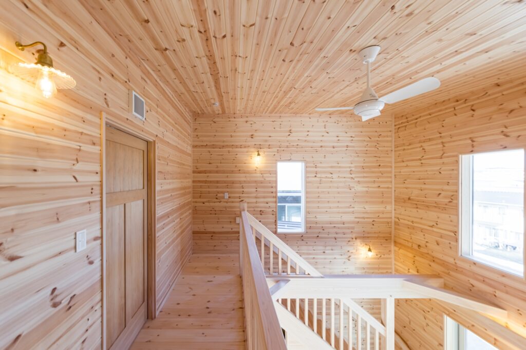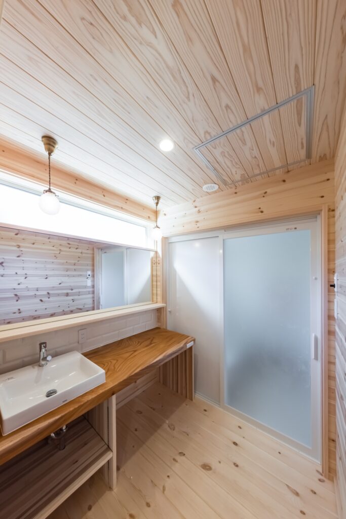 ご実家がパインの天井・壁・床に囲まれているので、全体的にパイン材をメインに設計させていただきました。