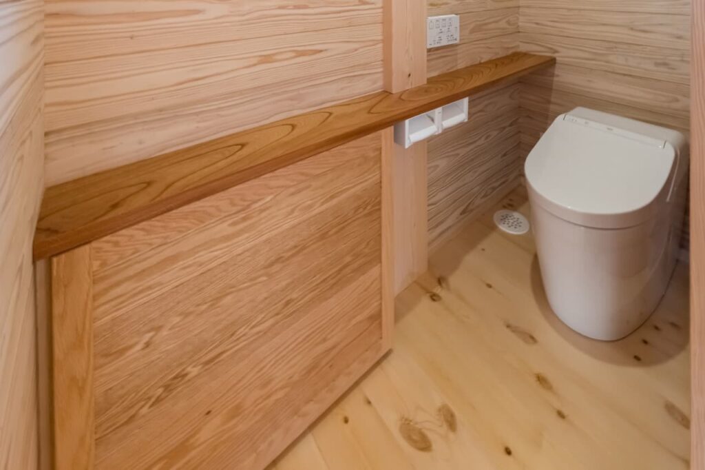 外構と共に考えた間取りは玄関、勝手口の取付位置を考えながら玄関からは直接トイレへ、勝手口からは水廻りへ直接行けるように。