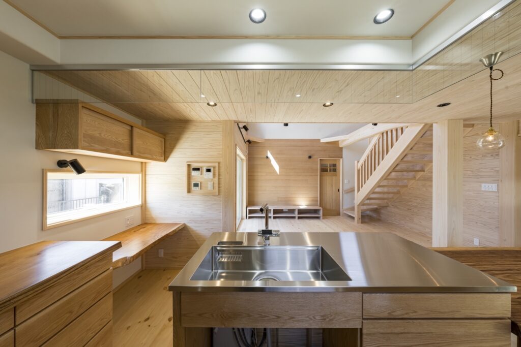 LDKから見える筋トレルームやケヤキの一枚板を使った超特製キッチンなどなど楽しみを詰め込んだ作品である。