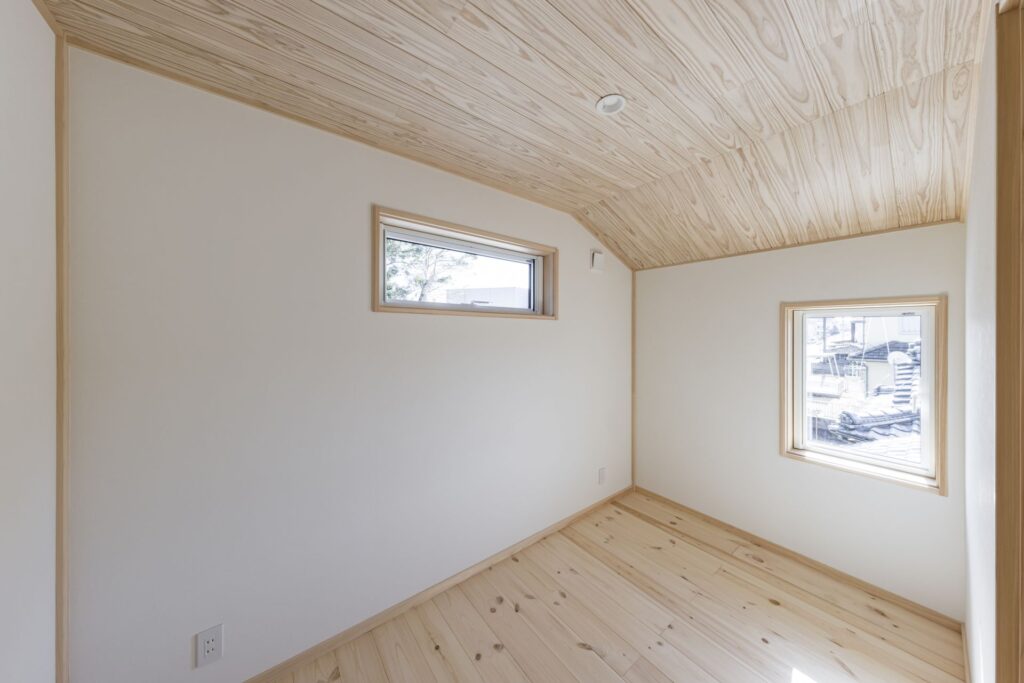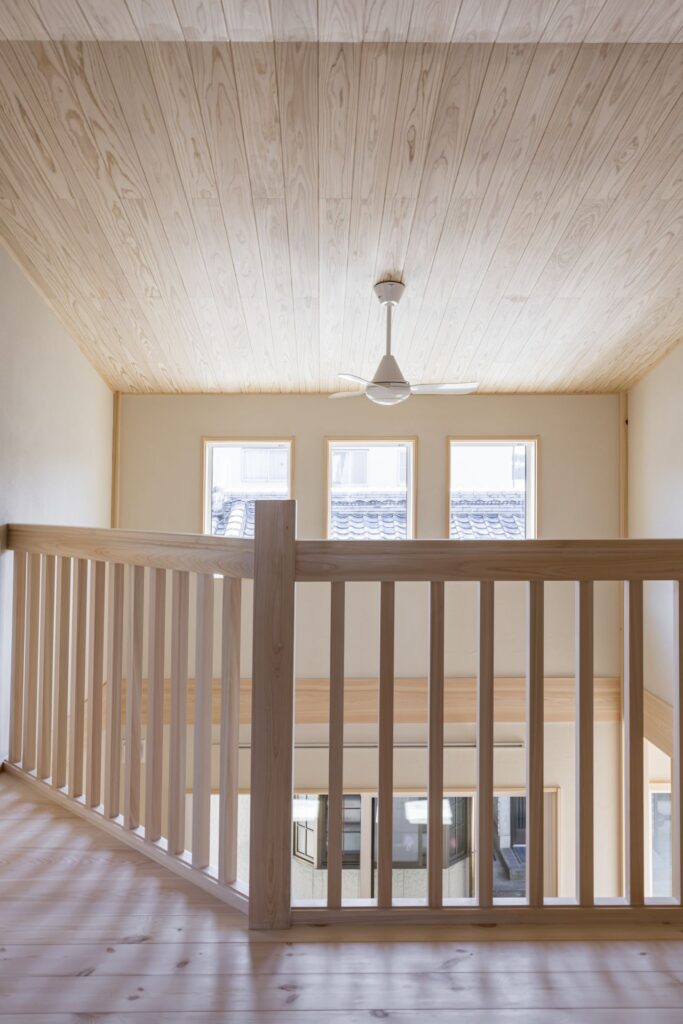 トラックなど大型車両の交通量も多い道路に面しているため、道路側に玄関や階段、水回りを配置することで静かに生活できるように。