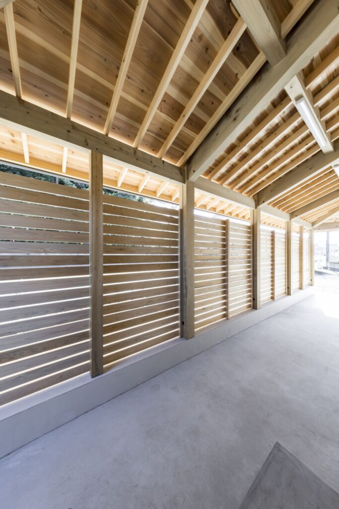 道路に面して格子を配置することでプライバシーと騒音に配慮している。