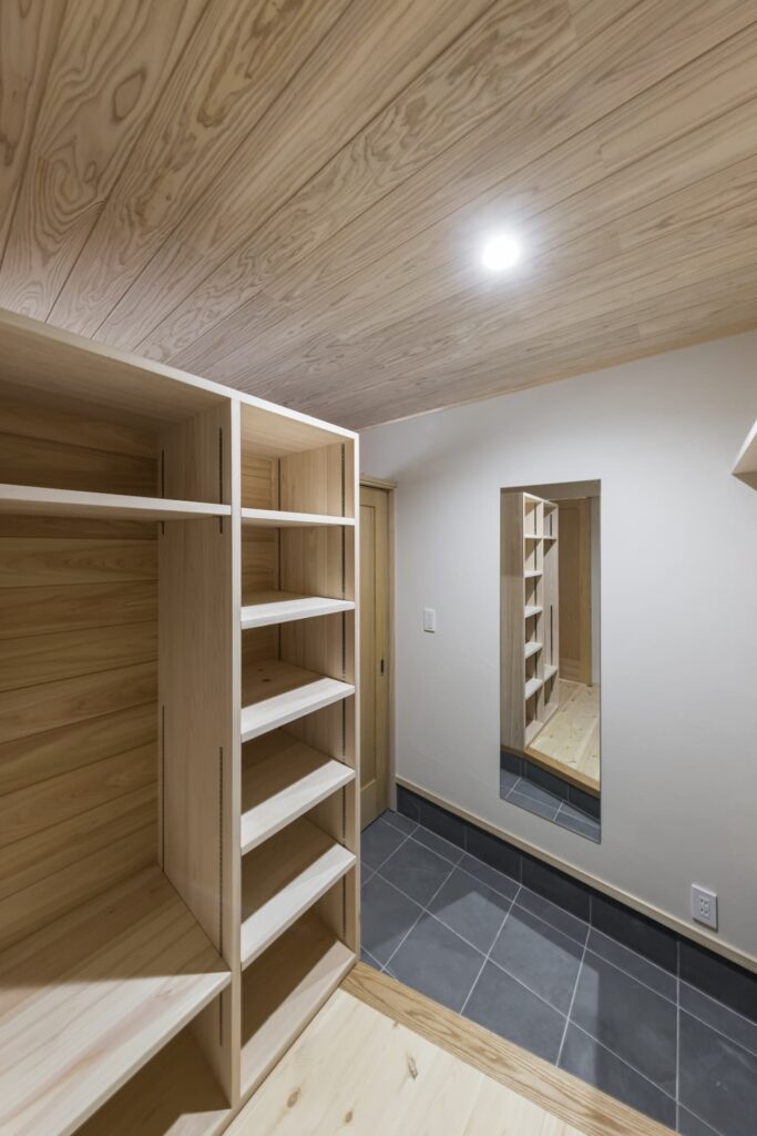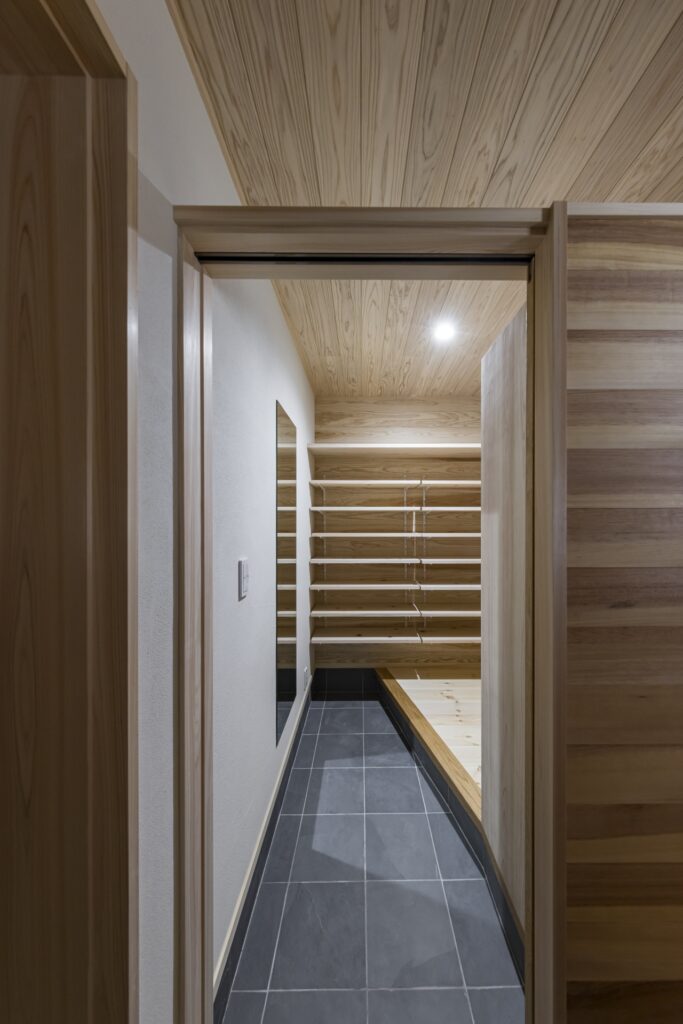 玄関は家族と客人の動線を分けている。写真は家族の土間収納。