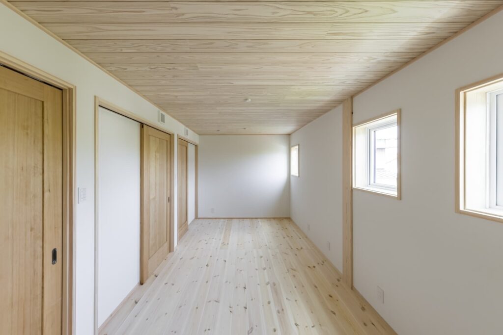 一階子ども部屋のすぐ外にスタディスペースを配置することで子ども部屋の大きさは小さくしている。子どもの成長に合わせてどのように間仕切りを設けていくのか今から楽しみである。