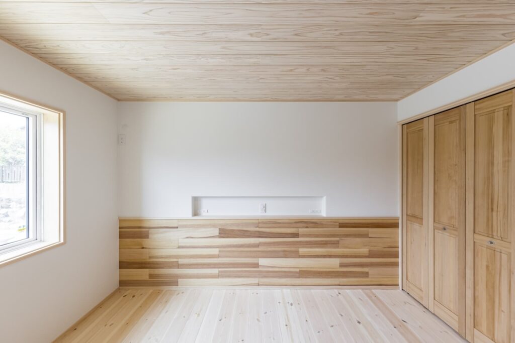 勉強コーナーをパブリックスペースに設ける事で、将来的な必要性が曖昧な子ども部屋を適度な大きさに抑えた(9帖を最大3分割にする想定)。