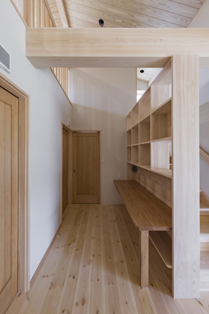 玄関は家族の動線とお客様の動線を緩く分けている。また、玄関ホールからキッチン、リビングへの動線も別にし、回遊性を持たせることで使い勝手を高めた。