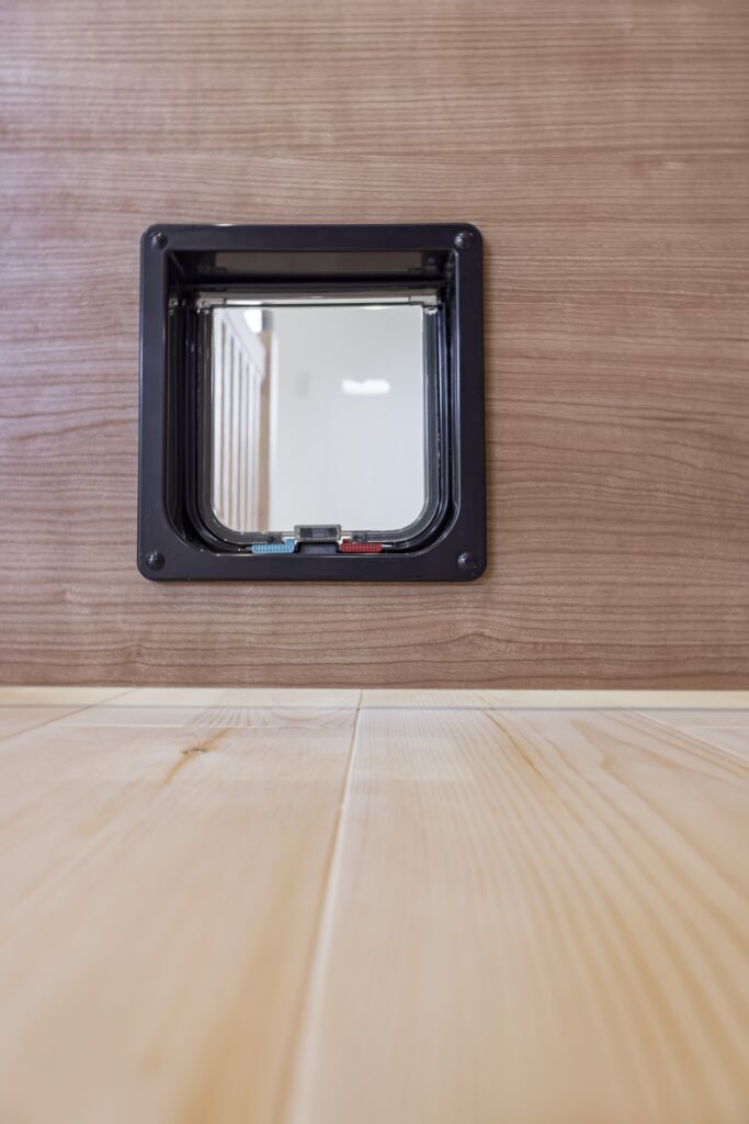 施主様よりご依頼の愛猫ちゃん用のドアもつけました。愛猫ちゃんは階段がお気に入りのようです。