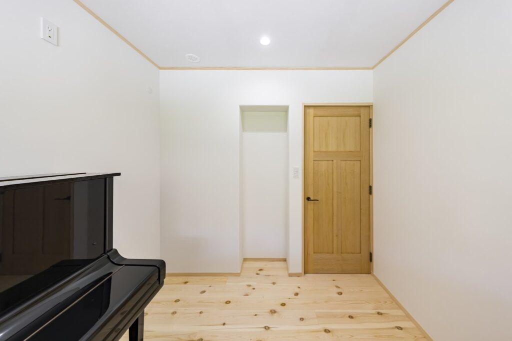 大好きな木の家にゲストルームとグランドピアノが置けるリビングがある完全平屋