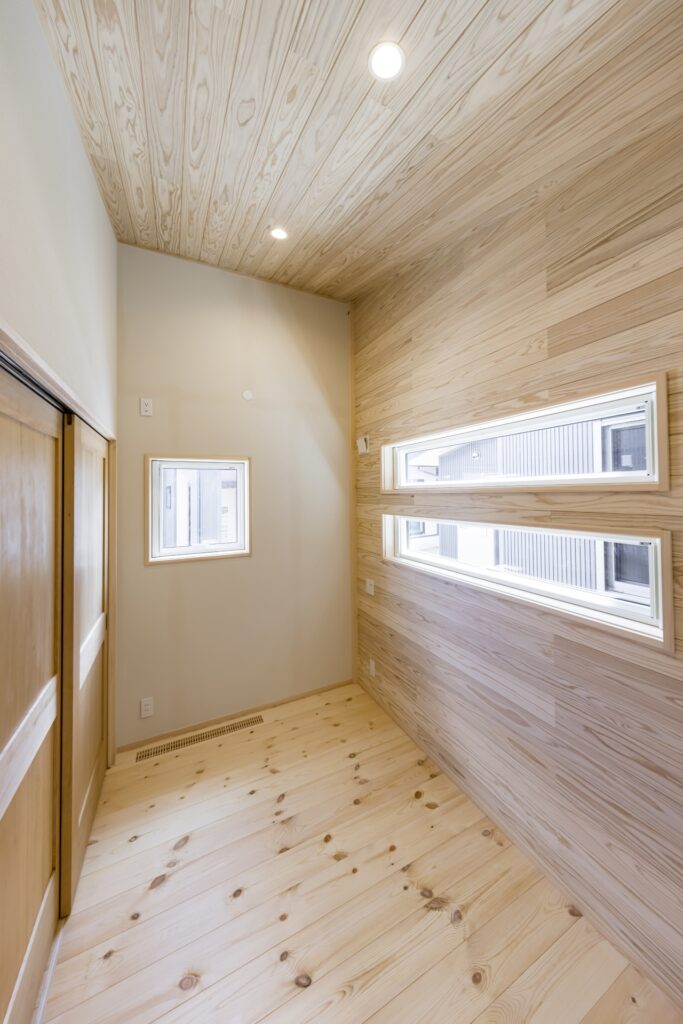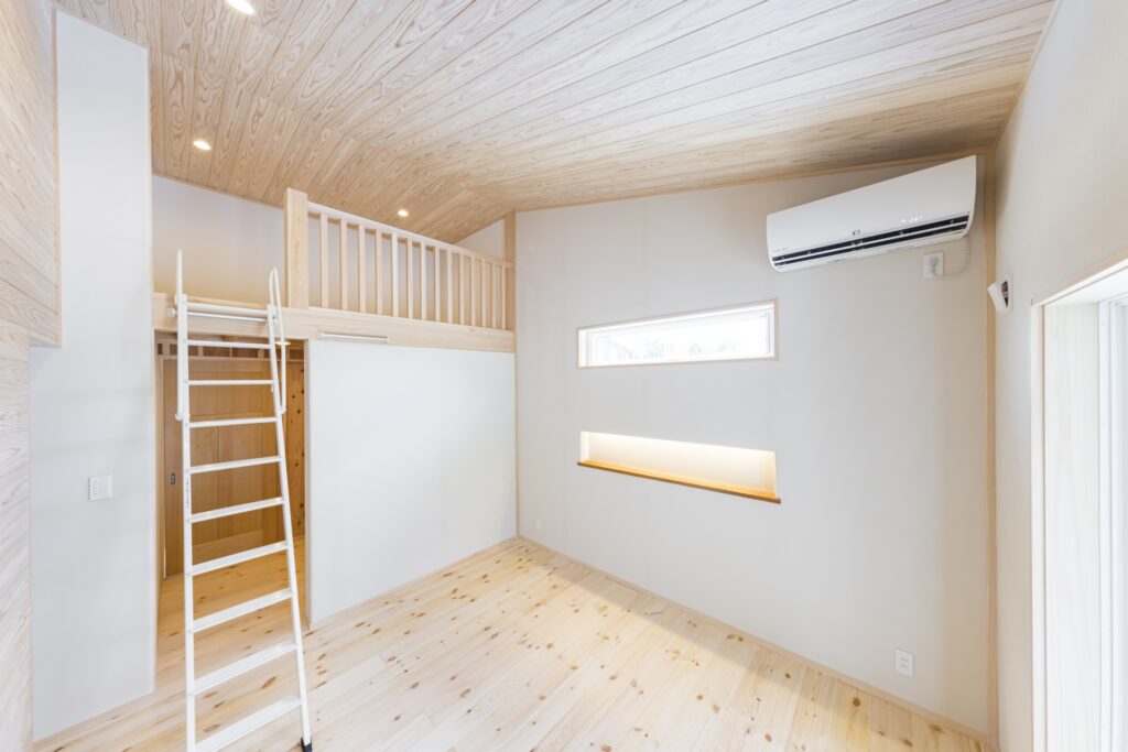 寝室には屋根勾配を活かしたロフトをご提案。荷物を置いたり、籠ったり出来る平屋でもプラスαのスペースを。