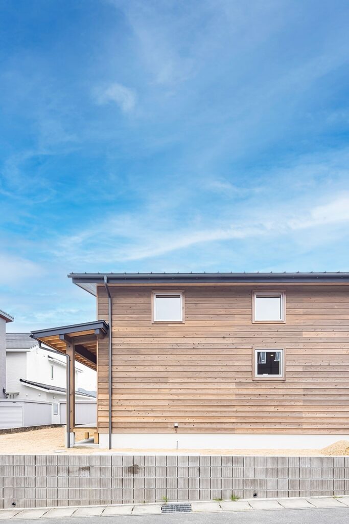 基本的に敷地に対してゆとりある設計を求められており、施主様の希望であった家と一体感のある二台分の駐車や、ウッドデッキは建蔽率の範囲におさまるよう慎重に計画した。