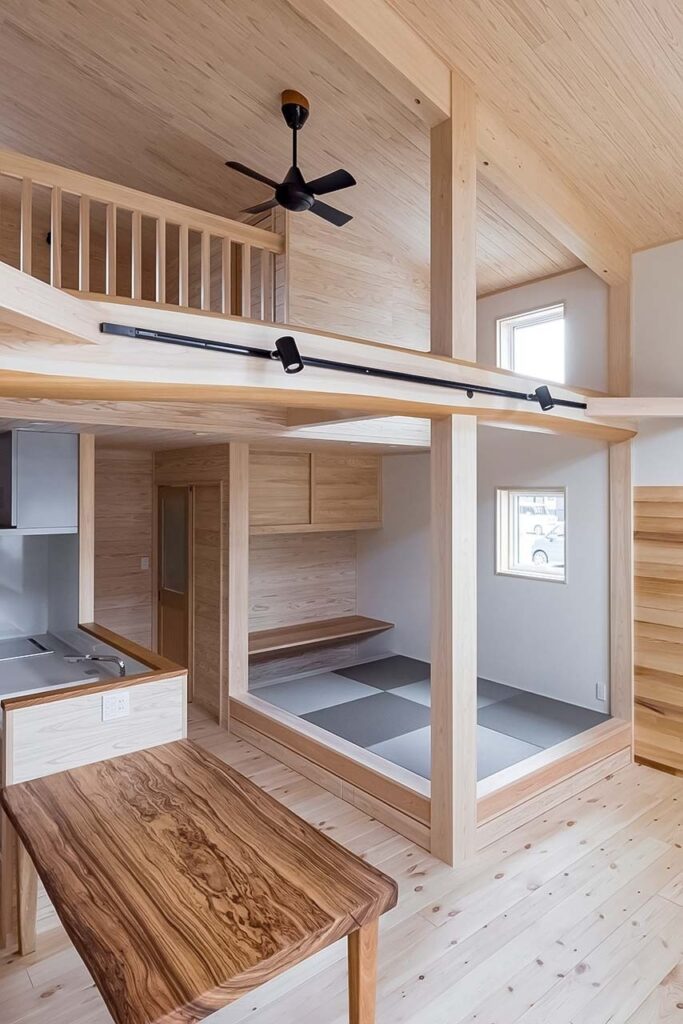5.3m の太鼓梁が魅せる吹抜け