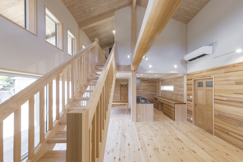 家族が集まれる広いリビング~階段が溜まり場になるように設計した。