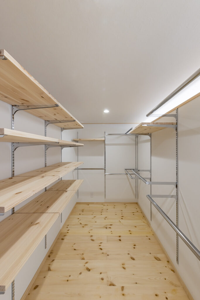 LDKからつながるランドリースペースは作り付け収納タンス付きで風も光もたっぷり入るスペースを確保。